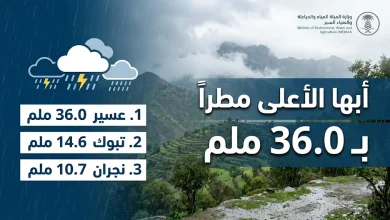 أبها تتصدر المشهد المطري.. تقرير يوضح كميات هطول الأمطار في مناطق المملكة اليوم الأحد 22 مارس 2026
