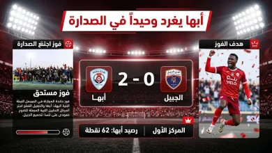 أبها يحكم قبضته على صدارة دوري يلو بثنائية في شباك الجبيل ويوسع الفارق مع الدرعية لـ 6 نقاط
