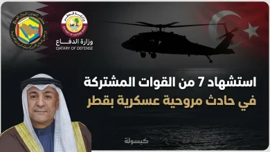 استشهاد 7 من منسوبي القوات القطرية والتركية في حادث تحطم مروحية عسكرية بالمياه الإقليمية لدولة قطر