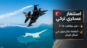 استنفار عسكري تركي ونشر مقاتلات إف-16 في شمال قبرص بعد هجوم بمسيّرة استهدف قاعدة بريطانية