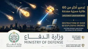 الدفاع السعودية تعلن تدمير أكثر من 60 طائرة مسيّرة مفخخة أطلقت باتجاه المملكة