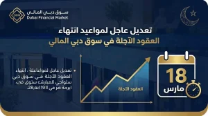 بسبب عطلة عيد الفطر.. تقديم موعد انتهاء العقود الآجلة في سوق دبي المالي إلى الأربعاء 18 مارس