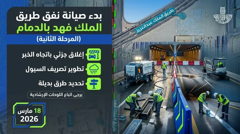 تفاصيل الإغلاق الجزئي لنفق طريق الملك فهد بالدمام باتجاه الخبر…
