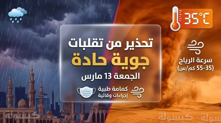 تقلبات جوية حادة في مصر اليوم الجمعة 13 مارس وارتفاع الحرارة لـ 35 درجة قبل عودة الأمطار والأجواء الشتوية