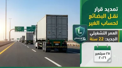 شروط نقل بضائع الغير عبر منصة لوجستي وتمديد العمر التشغيلي للشاحنات إلى 22 سنة