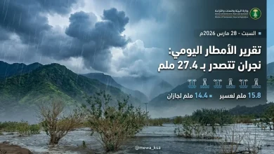 أصدرت وزارة البيئة والمياه والزراعة، اليوم السبت 28 مارس 2026 (الموافق 9 شوال 1447 هـ)، تقريرها اليومي حول رصد كميات…