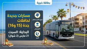 مواصلات جدة تعلن إطلاق المسارين 15 و16 لخدمة الكورنيش وطريق الأمير سلطان بدءاً من ثاني أيام العيد