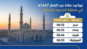 مواعيد صلاة عيد الفطر 1447 في الحدود الشمالية 2026 وتوقيت الصلاة في عرعر ورفحاء وطريف والعويقيلة