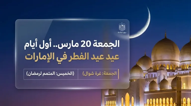 موعد أول أيام عيد الفطر 2026 في الإمارات الجمعة 20-03-2026 رسمياً