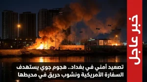 هجوم عنيف بطائرات مسيرة وصواريخ يستهدف السفارة الأمريكية في بغداد ويتسبب بنشوب حريق داخل مجمعها الدبلوماسي