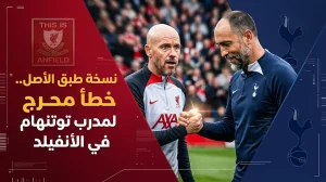 واقعة غريبة في الدوري الإنجليزي.. مدرب توتنهام يصافح مسؤول ليفربول بالخطأ بسبب “تشابه الملامح” مع آرني سلوت