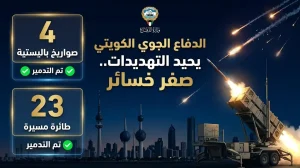 وزارة الدفاع الكويتية تعلن تدمير 4 صواريخ باليستية و23 طائرة…