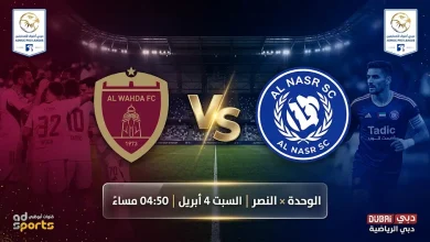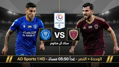 القنوات الناقلة لمباراة الوحدة والنصر السبت 4-4-2026 في دوري أدنوك للمحترفين