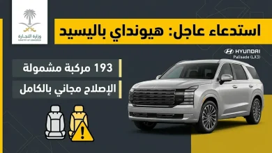 أصدرت وزارة التجارة السعودية اليوم الأربعاء 1 أبريل 2026، قراراً عاجلاً باستدعاء (193) مركبة من طراز هيونداي باليسيد (Hyundai Palisade)،…