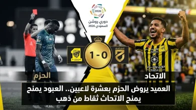 بعشرة لاعبين.. الاتحاد ينتزع فوزاً ثميناً من الحزم ويقترب من المربع الذهبي