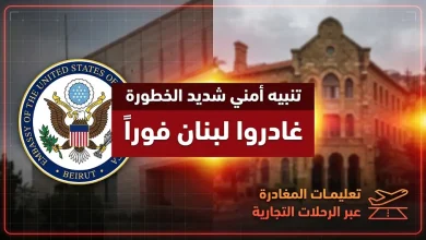 السفارة الأمريكية في بيروت توجه نداء عاجلاً لمواطنيها للمغادرة فوراً بسبب تهديدات تستهدف المنشآت التعليمية