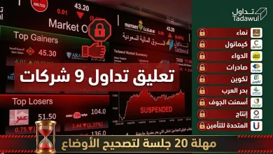 تداول السعودية تعلن إيقاف 9 شركات عن التداول اليوم الأربعاء وتمنحها مهلة 20 جلسة قبل التعليق النهائي