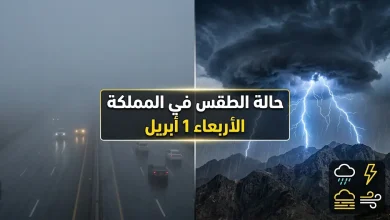 حالة الطقس في السعودية اليوم الأربعاء 1-4-2026 ومناطق هطول الأمطار الرعدية والضباب