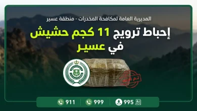 مكافحة المخدرات تحبط ترويج 11 كيلوجراماً من الحشيش في عسير وتضبط مقيمين من الجنسية الباكستانية