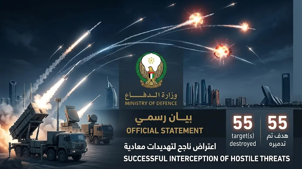 الدفاعات الجوية الإماراتية تعترض وتدمر 10 صواريخ باليستية و45 طائرة مسيرة معادية في تصعيد خطير