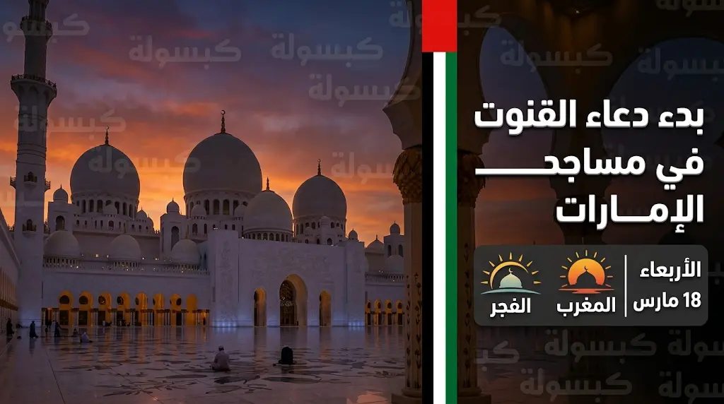 بدء تطبيق قنوت النوازل في مساجد الإمارات خلال صلاتي الفجر والمغرب اعتباراً من اليوم