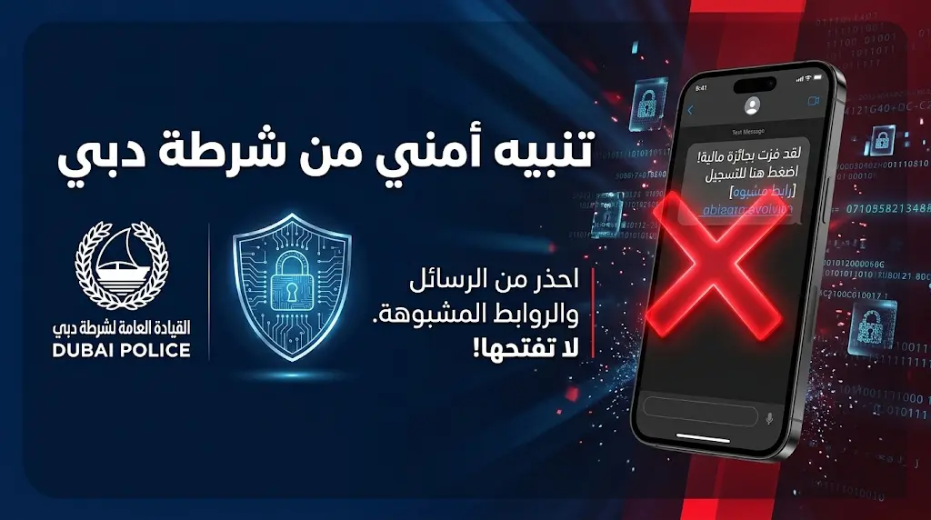 تنبيه عاجل من شرطة دبي بشأن رسائل احتيالية لسرقة البيانات البنكية اليوم الأربعاء 18 مارس 2026