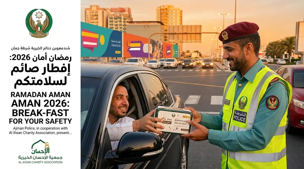 شرطة عجمان تكثف جهودها الميدانية لتوزيع وجبات الإفطار وتعزيز السلامة المرورية في رمضان 2026
