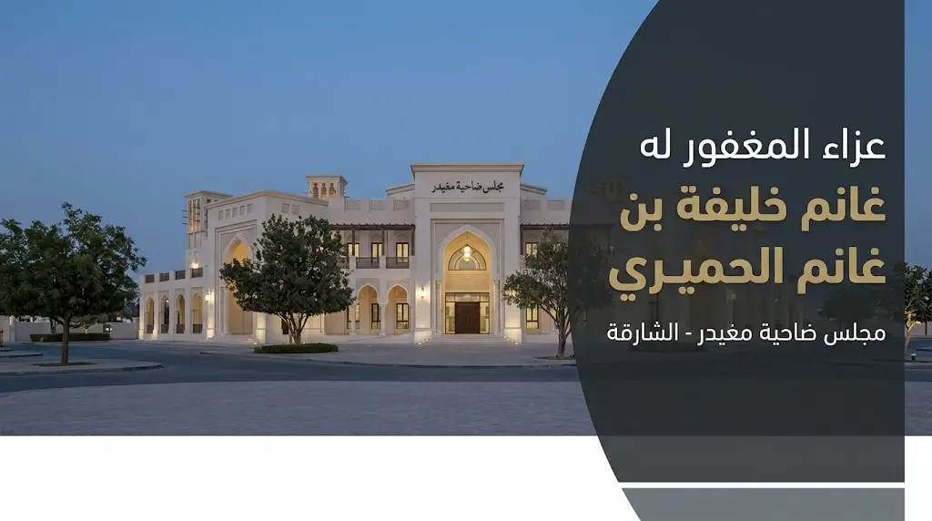 شيوخ ومسؤولون يقدمون واجب العزاء في وفاة غانم خليفة بن غانم الحميري بمجلس ضاحية مغيدر بالشارقة