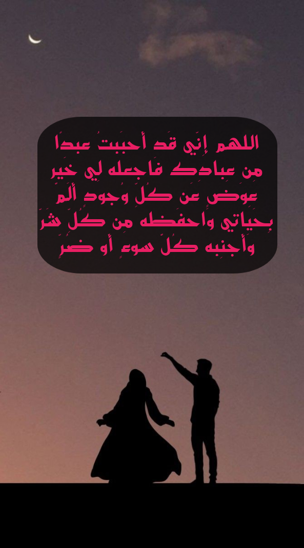 - “اللَّهُمَّ إِنِّي أَحْبَبْتُ عَبْدًا مِنْ عِبَادِكَ، فَإِنْ كَانَ فِيهِ خَيْرٌ لِي فِي دِينِي وَدُنْيَايَ وَآخِرَتِي فَاكْتُبْهُ لِي، وَيَسِّرْ لَنَا الخَيْرَ وَاجْمَعْ بَيْنَنَا عَلَى طَاعَتِكَ.”.