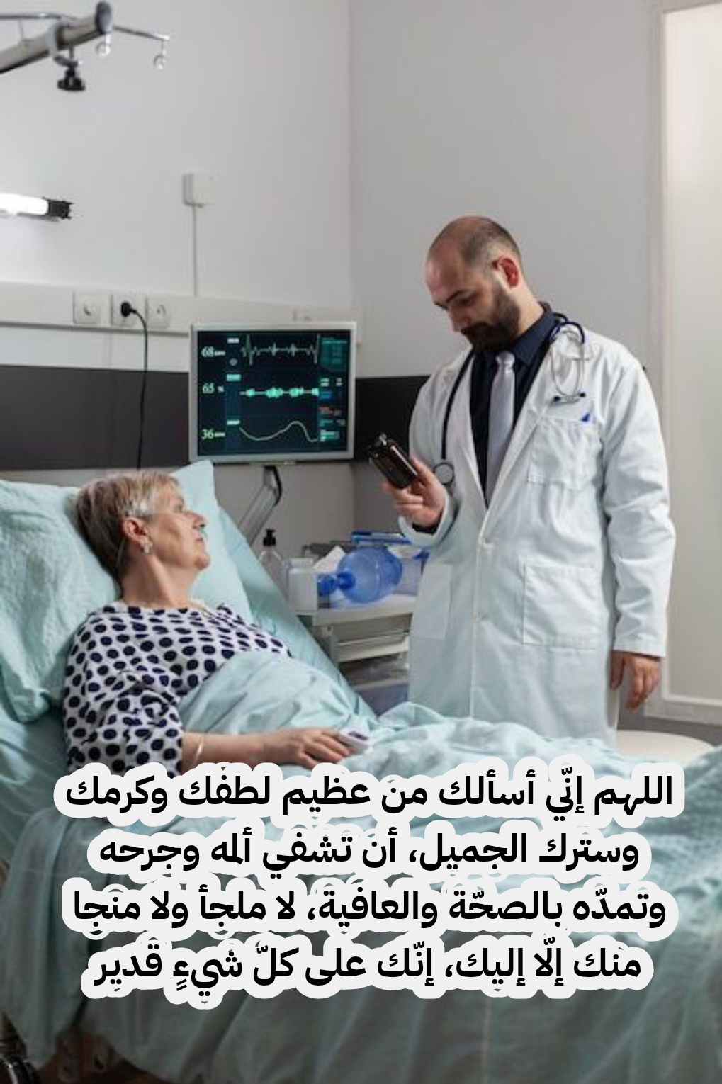 - اللهم يا رحمن الدنيا والآخرة، بيدك الشفاء وحدك، أسألك بقدرتك التي وسعت كل شيء أن تشفي هذا المريض وتلبسه لباس العافية، اللهم هون عليه كل ألم، وارزقه الصبر والقوة، اللهم اجعل ما أصابه تكفيرًا وتطهيرًا وأخرجه من كربه إلى فرج رحمتك، واجعله من المستبشرين برحمتك وكرمك.