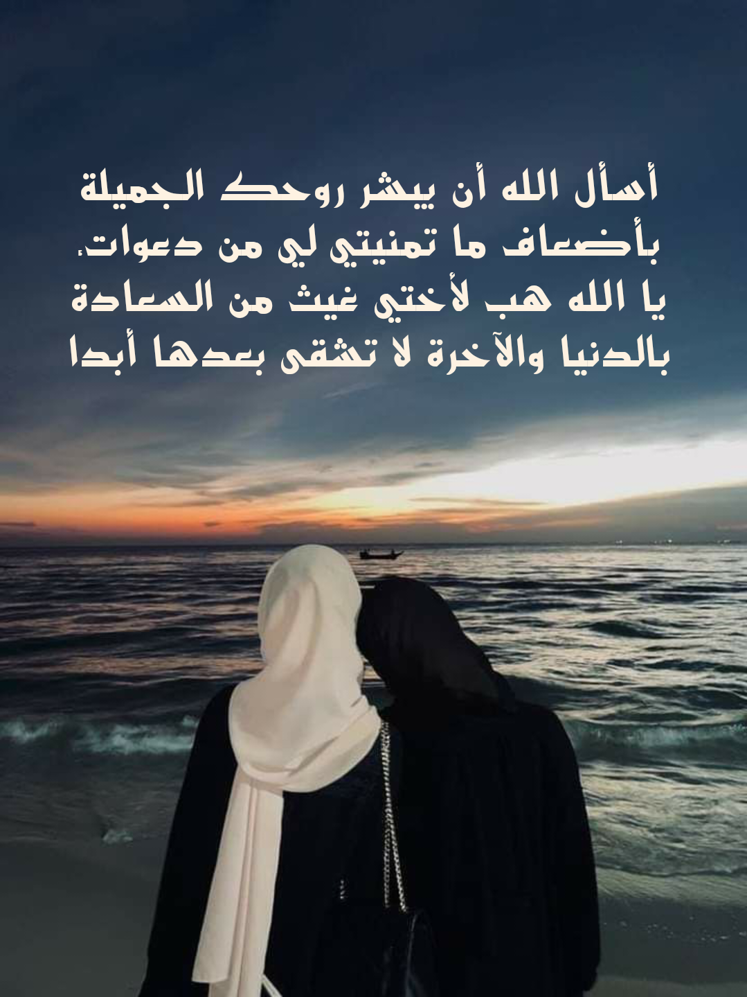 • اللهم يا مقلب القلوب ثبت قلب أختي على إيمانك واجعلها خيرًا وصلاحًا يُشرق في دربها واحفظها بين جوارك يوم لقائك.