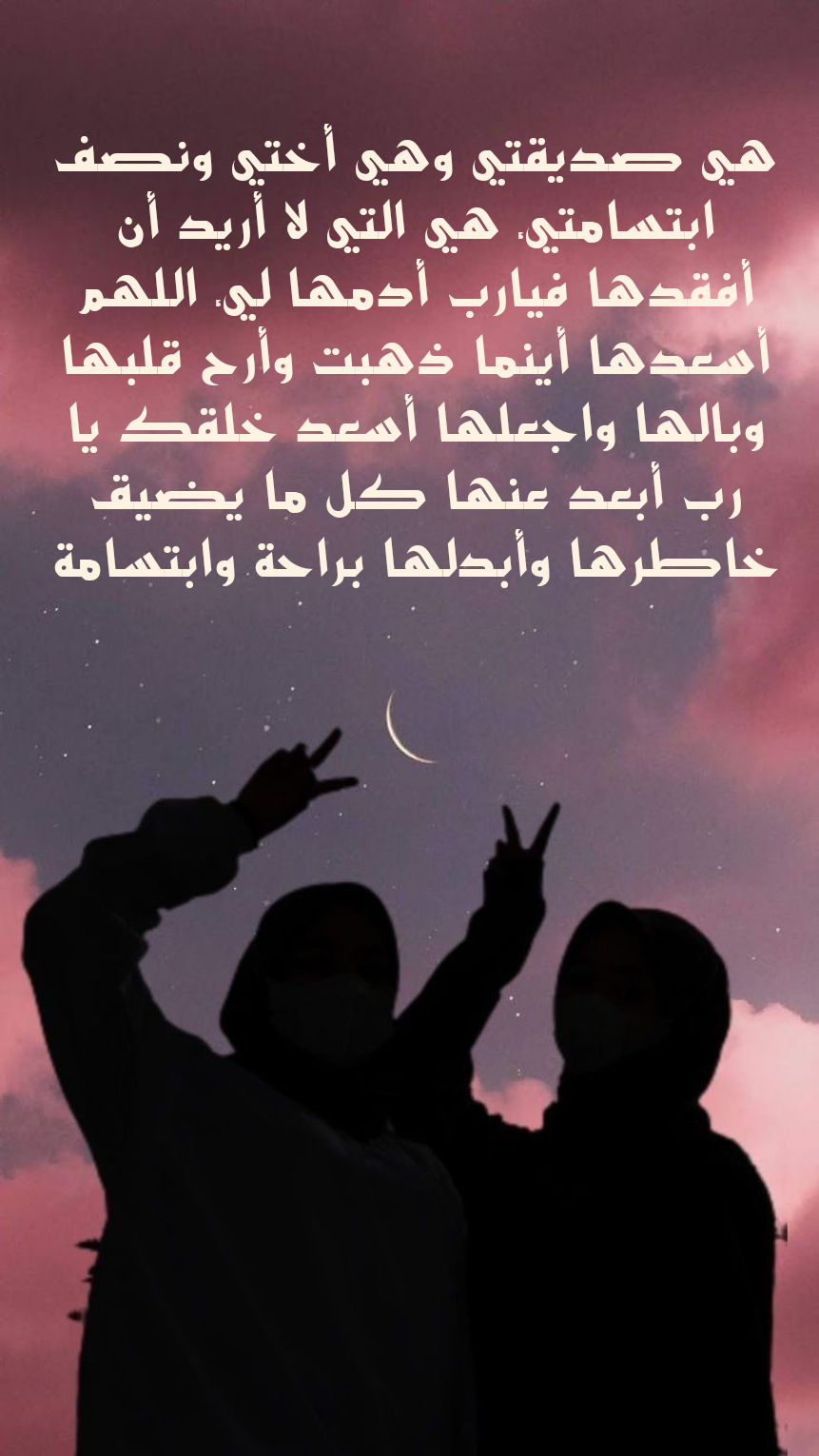 • اللهم احفظ لي أختي فهي بعيدة عني وأنت أدرى بحاجتي إليها وحبها الذي يملأ صدري يا رب اجعل أيامها سعيدة وتملى حياتها براحتك التي لا حدود لها.