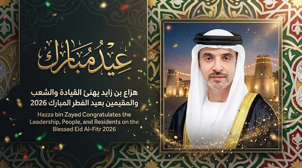تهنئة هزاع بن زايد للقيادة الرشيدة وشعب الإمارات والمقيمين بمناسبة عيد الفطر المبارك ودعواته بدوام الازدهار