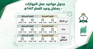 وفقاً للبيان الرسمي، فقد اعتمدت “الجوازات” خطة تشغيلية تراعي احتياجات المستفيدين في الأيام الأخيرة من الشهر الفضيل، وجاءت المواعيد كالتالي: