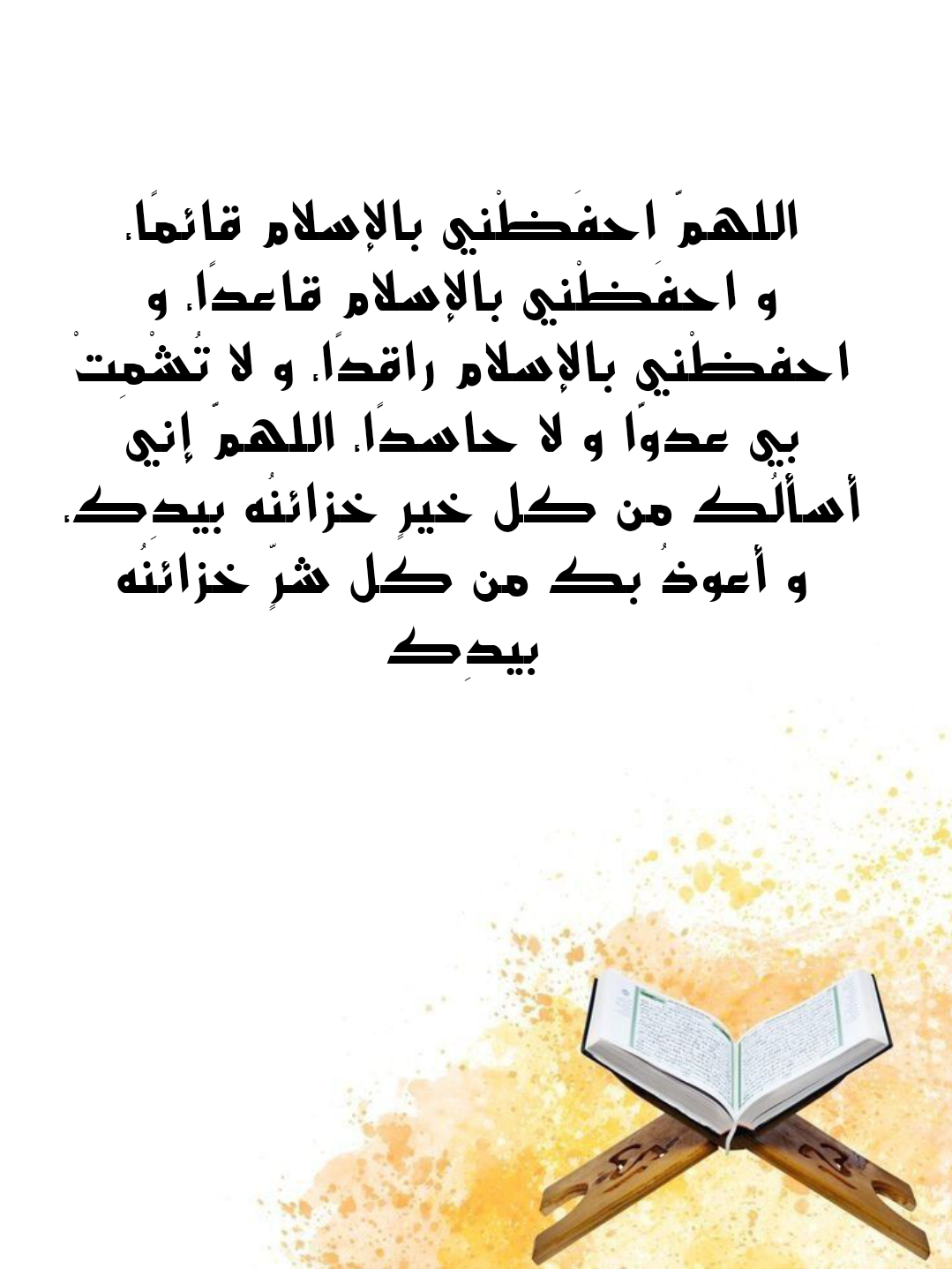 • يا عزيز أعزني، ويا كافي اكفني، يا قوي قوني، ويا لطيف ألطف بي في أموري كلها، اللهم إني أسألك سلاماً ما بعده كدر، ورضا ما بعده سخط، وفرحاً ما بعده حزن.