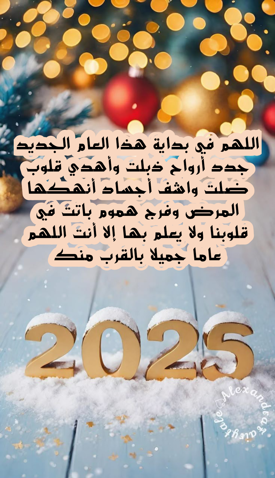 - يا الله… يا عالم الغيب والشهادة هذه سنة جديدة أقبلت بأمرك يا من تقول للشيء كن فيكون أسألك أن تكون سنة خير وفرح وسعادة وأن تبعد عني وعن أحبتي كل هم وحزن وبلاء واجعلها سنة مليئة بالصحة والعافية.