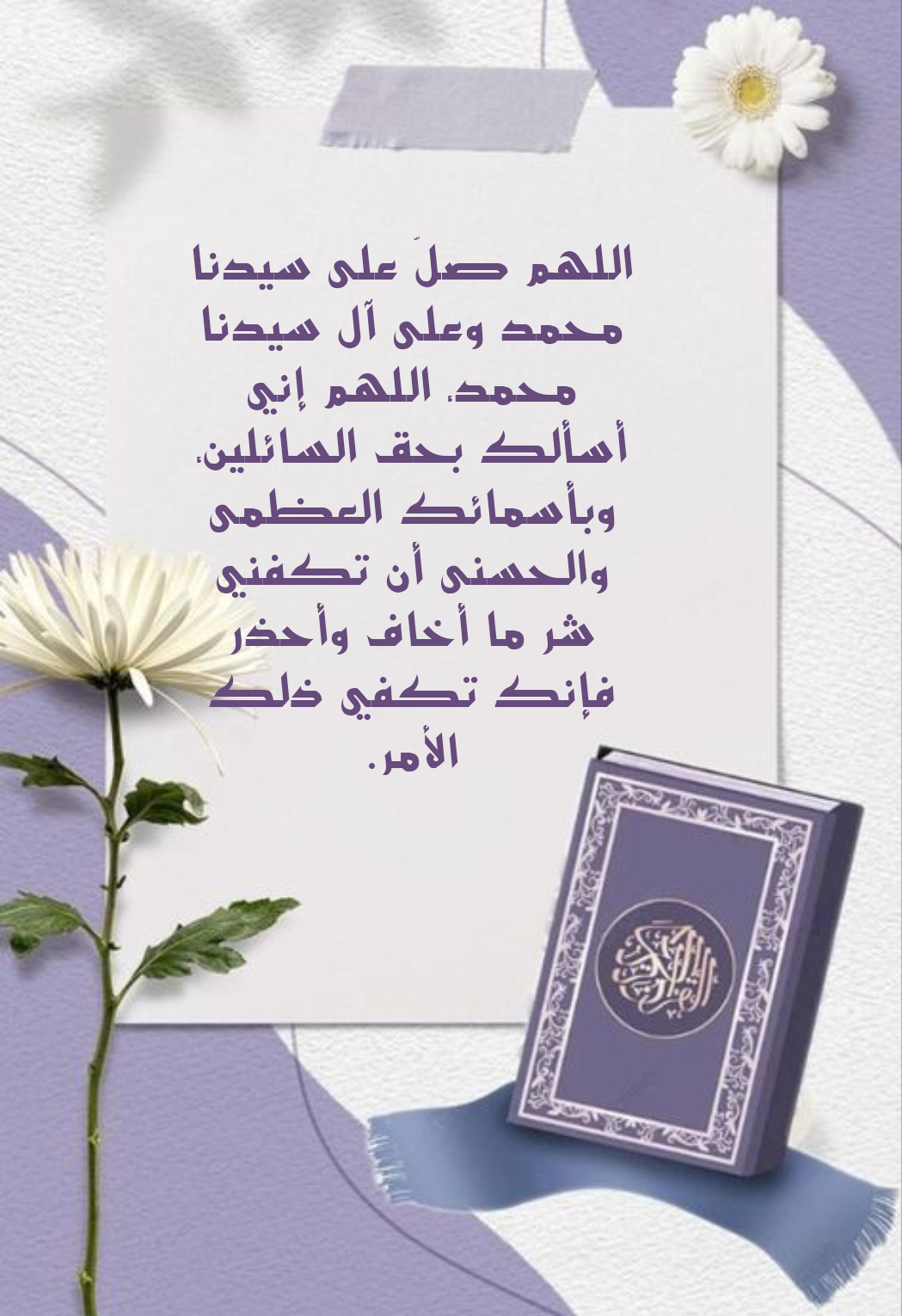 - “اللَّهُمَّ يا مُيَسِّرَ كُلِّ شَديدٍ، ويَا مُلينَ الحديدِ، ويا مُنجزَ الوعيدِ..، أخرجني من حلق الضيق إلى أوسع الطريق…”.