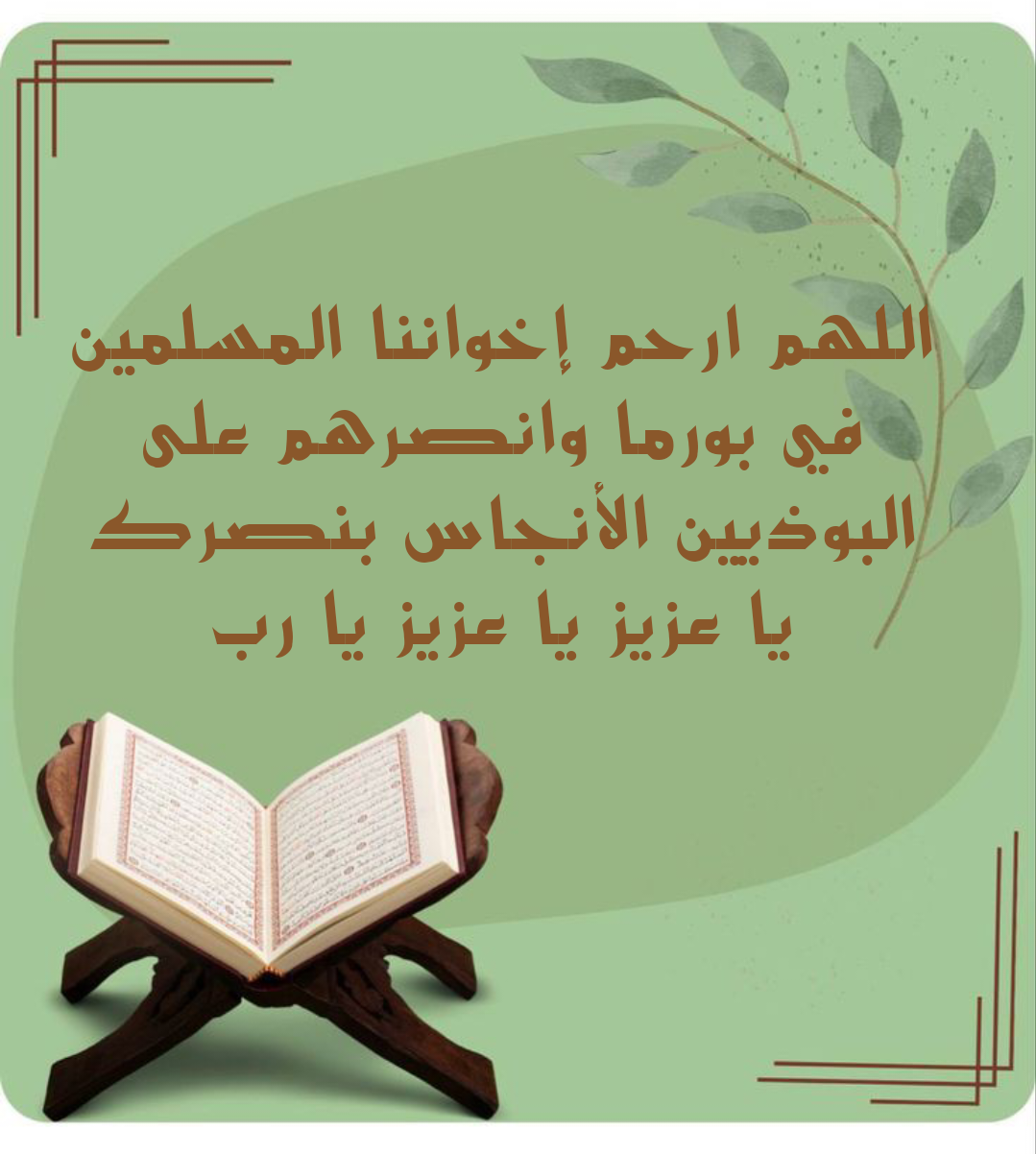 - يا حي يا قيوم برحمتك نستغيث، أصلح لإخواننا في بورما شأنهم كله، ولا تكلهم إلى أنفسهم طرفة عين.