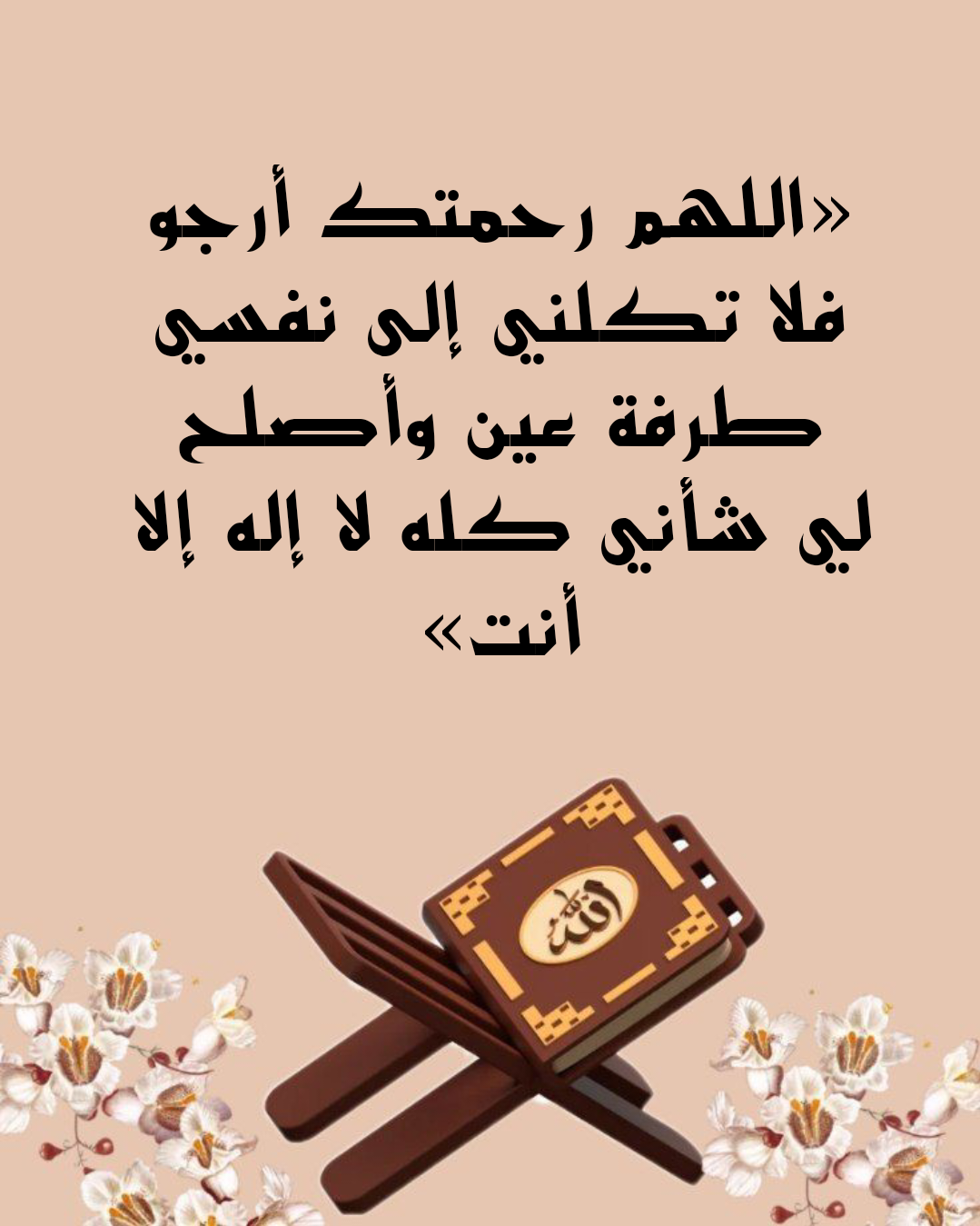 - اللهمَّ إليك مددتُ يدي وفيما عندك عظمت رغبتي، فتقبل توبتي وارحم ضعف قوتي واغفر زلتي واقبل معذرتي واجعل لي من كل خير نصيبًا وإلى كل خير سبيلًا برحمتك يا أرحم الراحمين.