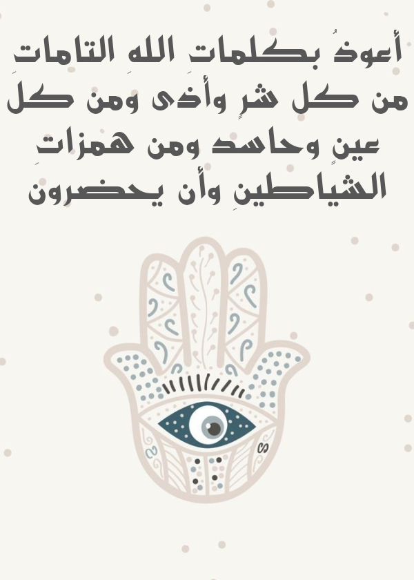 “أُعِيذُكُمَا بِكَلِمَاتِ اللَّهِ التَّامَّةِ مِنْ كُلِّ شَيْطَانٍ وَهَامَّةٍ، وَمِنْ كُلِّ عَيْنٍ لَامَّةٍ.”