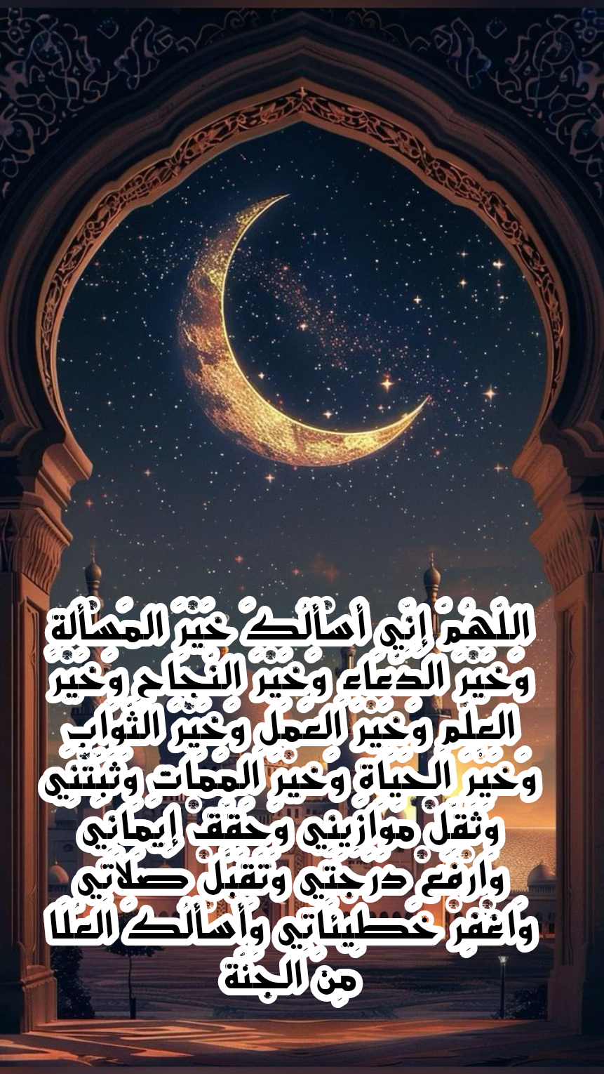 تنبيه هام: هذه الصيغة المطولة هي مما يتداوله بعض الناس، ولم تثبت بسند صحيح عن النبي صلى الله عليه وسلم أو أصحابه الكرام، الدعاء عبادة، والأصل فيها الالتزام بما ورد في القرآن الكريم والسنة النبوية الصحيحة، فهي كافية وشاملة ومباركة، وفيها غنية عن الأدعية التي لم يثبت سندها.