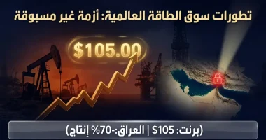 سجلت أسواق الطاقة العالمية قفزة كبرى في تداولات اليوم الاثنين 9 مارس 2026 (الموافق 20 رمضان 1447 هـ)، حيث انفجرت أسعار النفط لتتجاوز حاجز 105 دولارات للبرميل لخام برنت، بعد موجة من التوترات الجيوسياسية المتصاعدة، تأتي هذه الارتفاعات الحادة مدفوعة بقرار كبار منتجي النفط في الشرق الأوسط بخفض الإنتاج، تزامناً مع استمرار إغلاق مضيق هرمز الحيوي جراء العمليات العسكرية الجارية، مما أثار مخاوف جدية بشأن سلاسل الإمداد العالمية وتأمين احتياجات الطاقة الدولية.