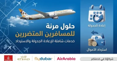 طيران الإمارات والاتحاد وفلاي دبي والعربية تتيح خيارات إعادة الحجز المجاني والاسترداد النقدي للمسافرين المتضررين