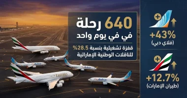 شهد قطاع الطيران المدني في دولة الإمارات العربية المتحدة طفرة تشغيلية ملحوظة، حيث سجلت الناقلات الوطنية (طيران الإمارات، الاتحاد للطيران، فلاي دبي، والعربية للطيران) إجمالي 640 رحلة جوية يوم أمس الأحد 8 مارس 2026، ويعكس هذا الرقم مرونة فائقة في استعادة وتيرة العمليات بعد موجة الاضطرابات الجوية والإقليمية التي أثرت على انسيابية الحركة مطلع الشهر الجاري.