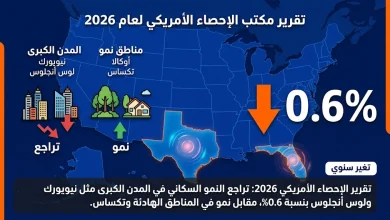 أصدر مكتب الإحصاء الأمريكي، اليوم الخميس 26 مارس 2026، بيانات رسمية حديثة تؤكد استمرار التباطؤ الملحوظ في معدلات النمو السكاني…