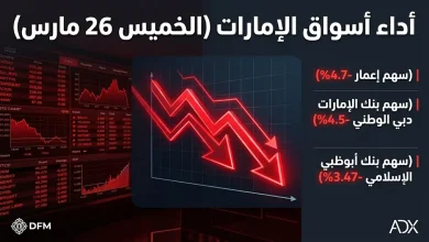 مؤشرات أسهم الإمارات تتحول للانخفاض الجماعي بختام تعاملات الخميس 26 مارس 2026