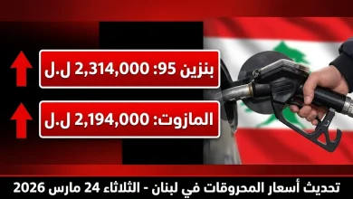 أسعار المحروقات في لبنان اليوم الثلاثاء 24-3-2026: ارتفاع كبير في سعر صفيحة البنزين والمازوت