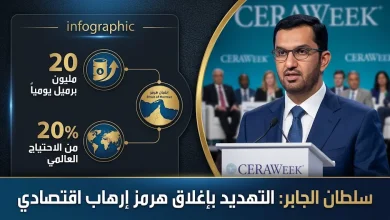 سلطان الجابر يصف التهديدات بإغلاق مضيق هرمز بالإرهاب الاقتصادي خلال أسبوع سيرا للطاقة في هيوستن