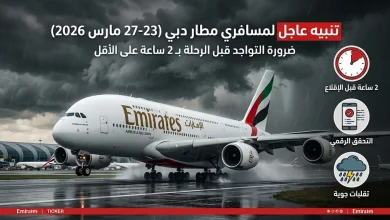 طيران الإمارات تصدر تنبيهاً عاجلاً للمسافرين عبر مطار دبي بسبب تقلبات الطقس حتى 27 مارس 2026