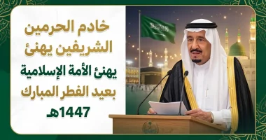 - خادم الحرمين الشريفين يهنئ المواطنين والمقيمين والأمة الإسلامية بحلول عيد الفطر المبارك لعام 1447هـ.